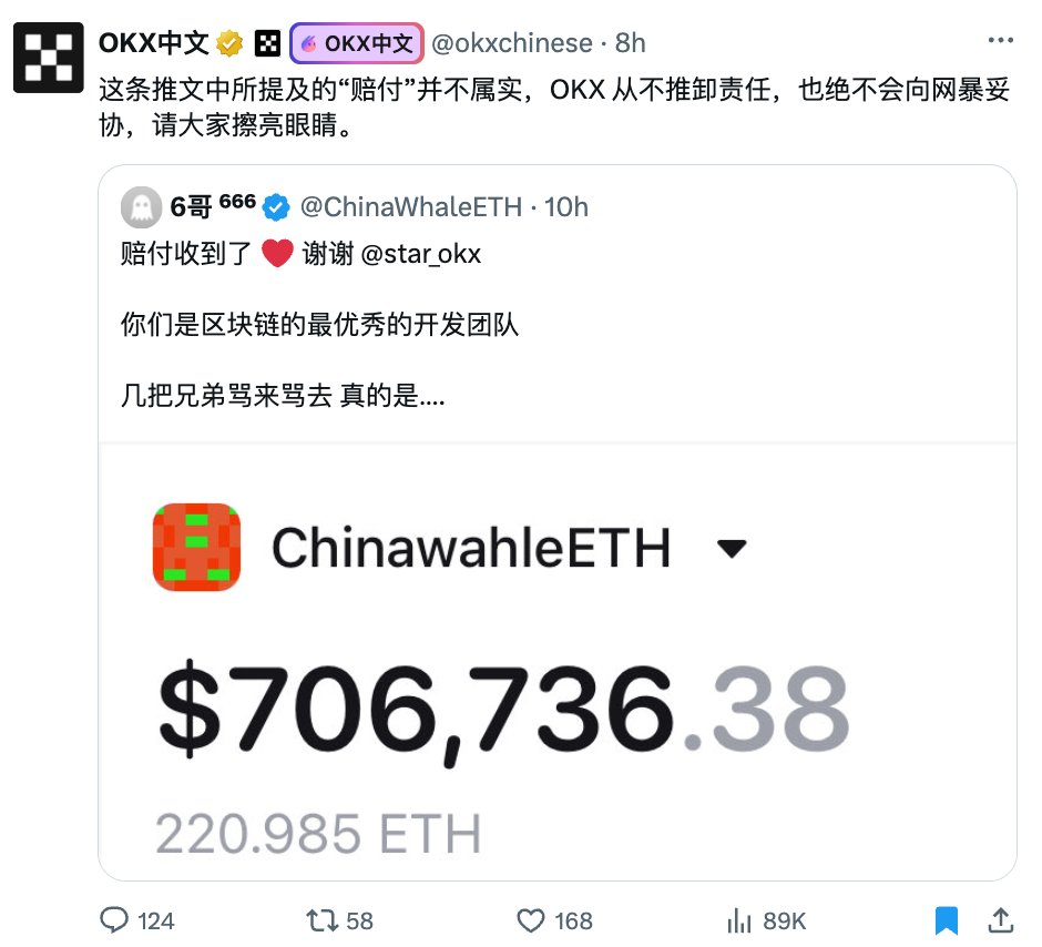 OKX官方发推证明,没有进行过任何赔付