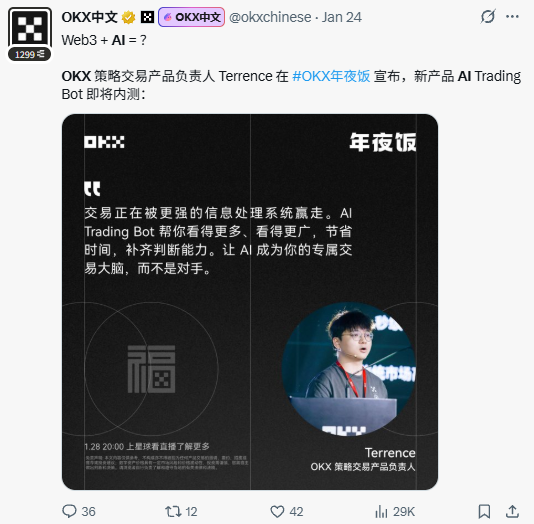 看这个老哥拍的,OKX 专门做了 AI 交易 Bot