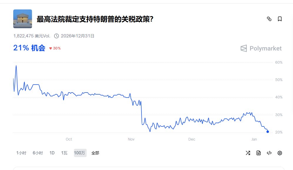 Polymarket上约79%的交易者认为,法院将对特朗普作出不利判决。此前,特朗普还曾高调宣称美国将通过关税政策获得超过6000亿美元收入