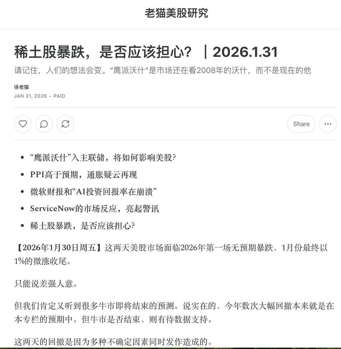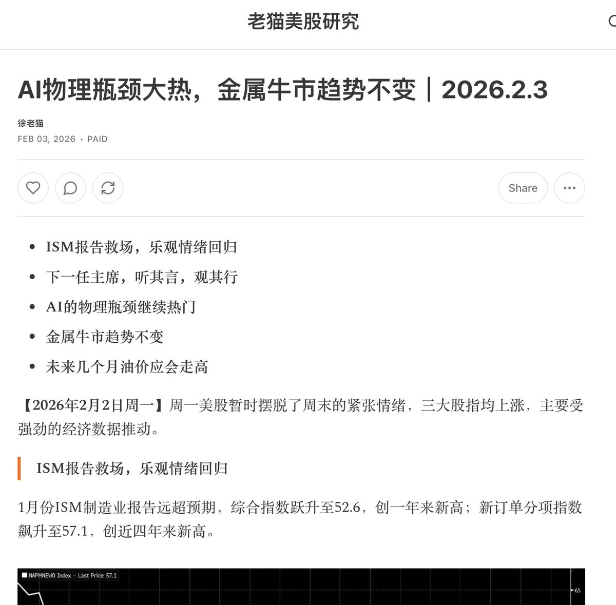 投资者感到信心增强。如果没有这个数据的话,周一的表现恐怕会很糟。由于市场对凯文-沃什未来的联储走向处在不确定中,期货市场在周末遭到抛售。👇