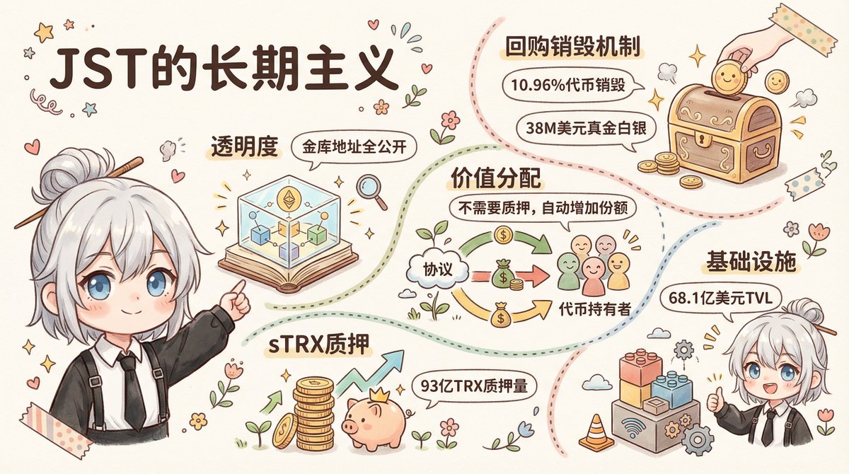 这相当于把协议赚的每一分钱,都直接分配给了所有持币者,不需要你质押,不需要你投票,只要你持有JST,你的份额占比就自动增加了