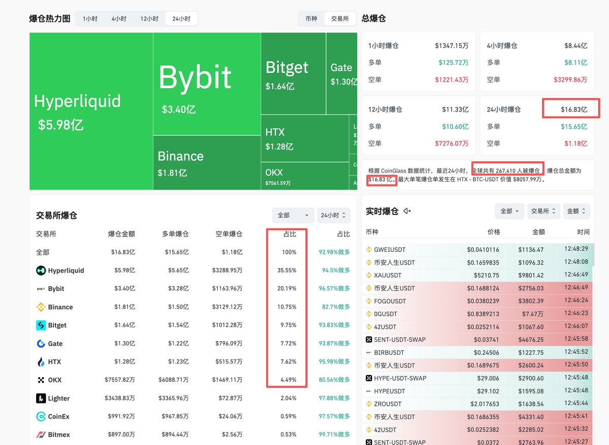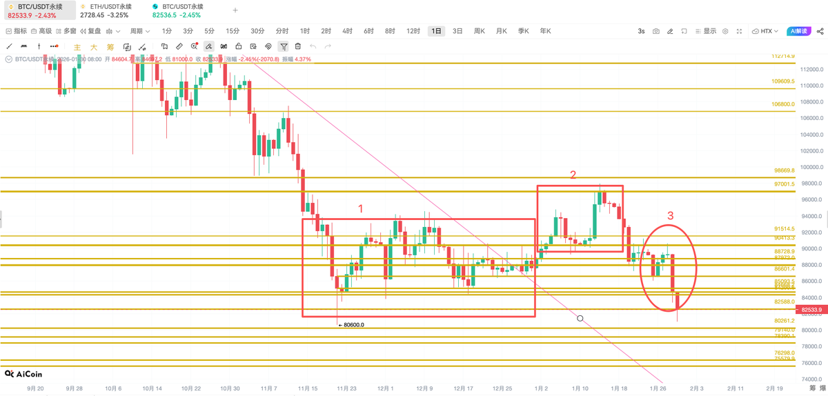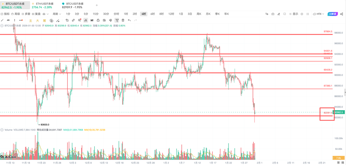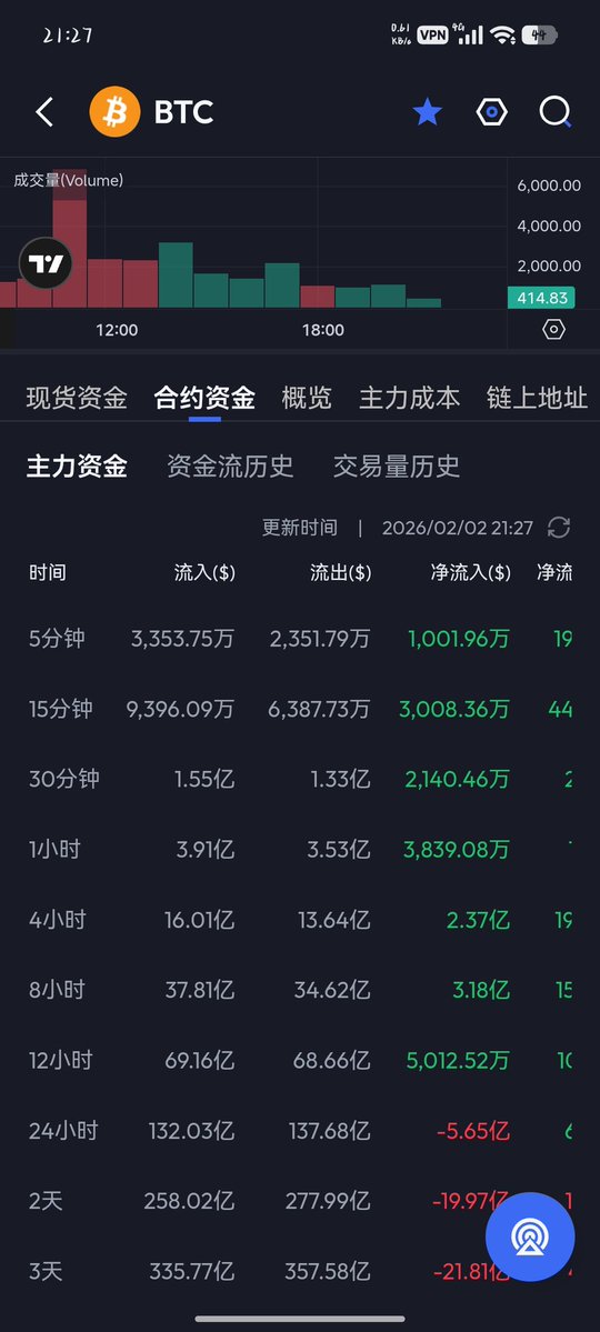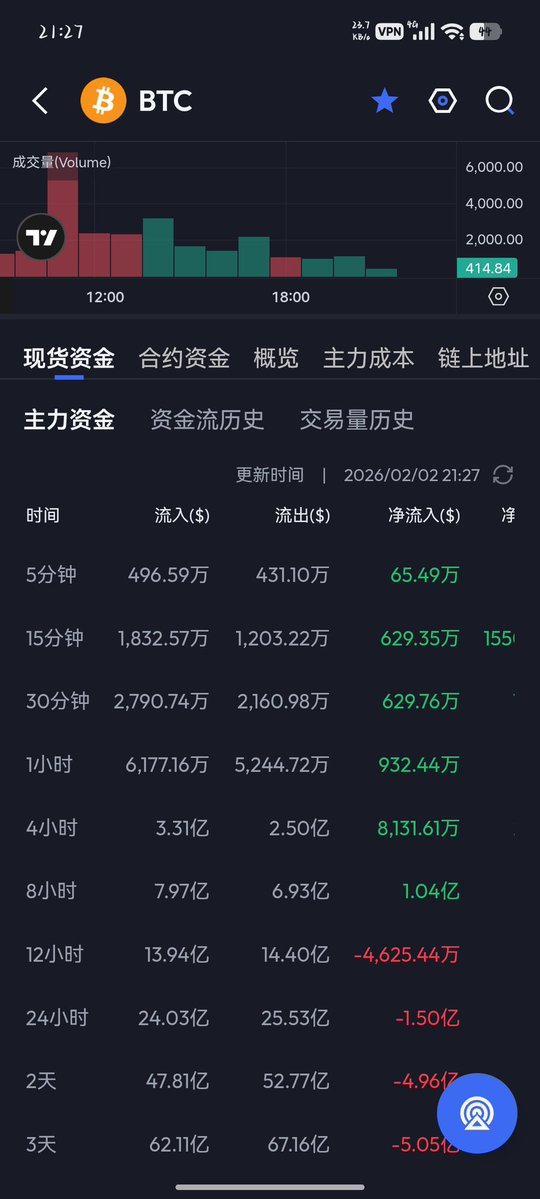 今天黄金放量插针(不太好的现象,即使没到顶,也要大调整了)把BTC继续带下来了. 全网26万人爆仓了16亿,本来就捉襟见肘的流动性又被抽走一些. BTC或许早该是这个走势了,不好好调整一段时间,后面就难涨了,从22年一直涨到了25年底,调整几个月或则半年也是正常的.