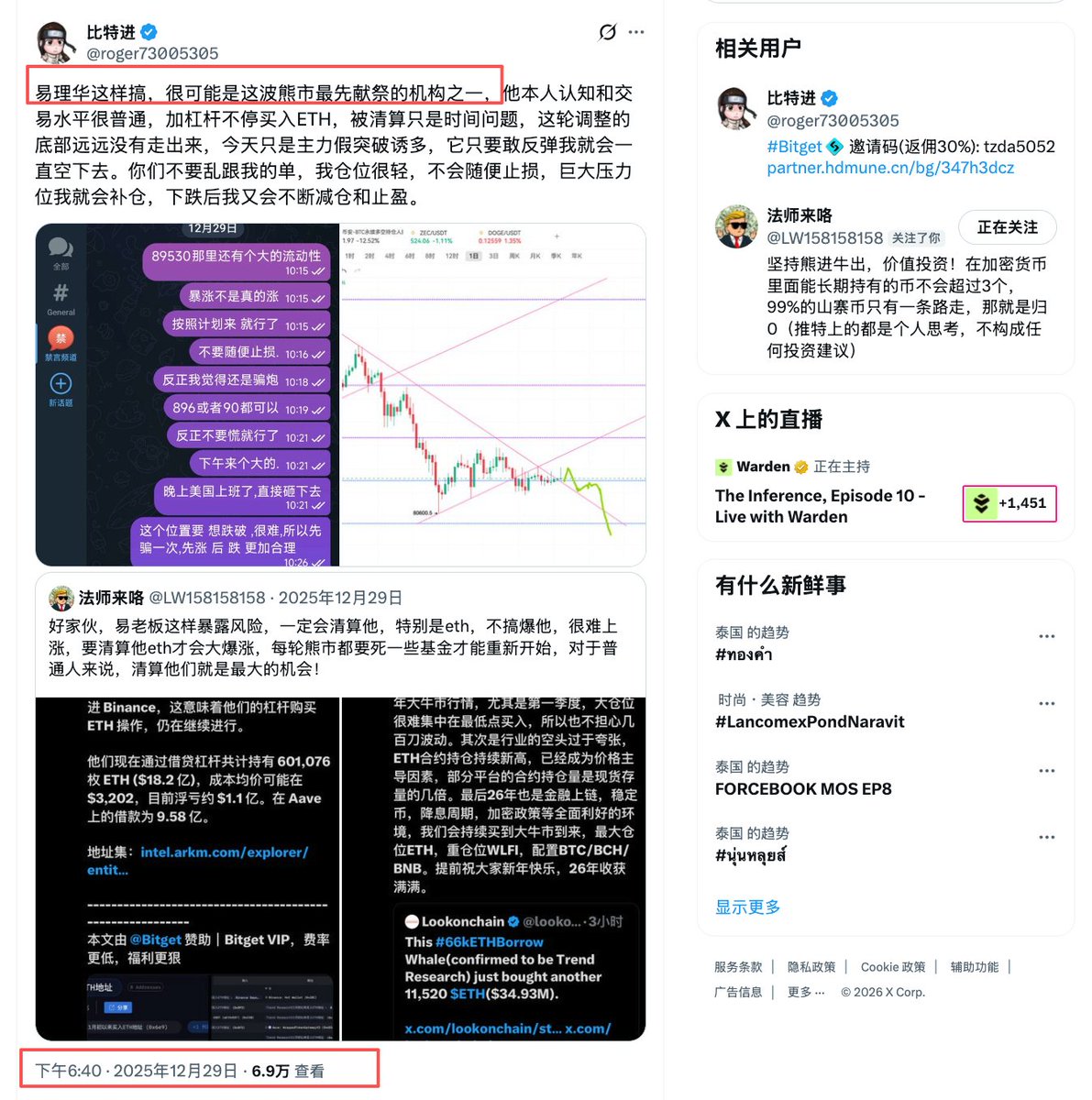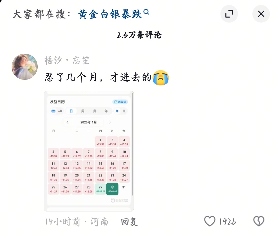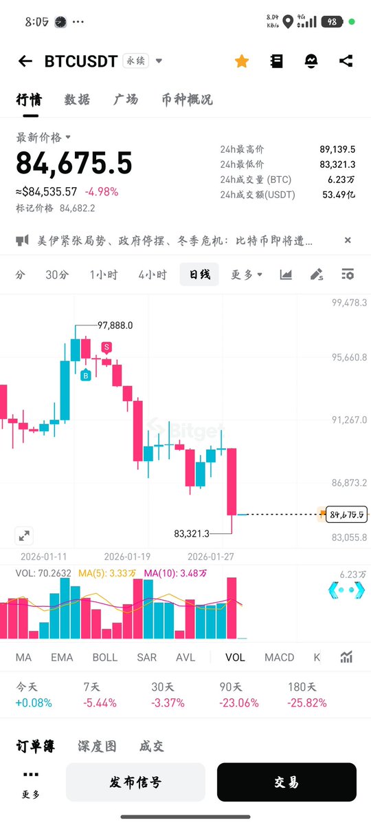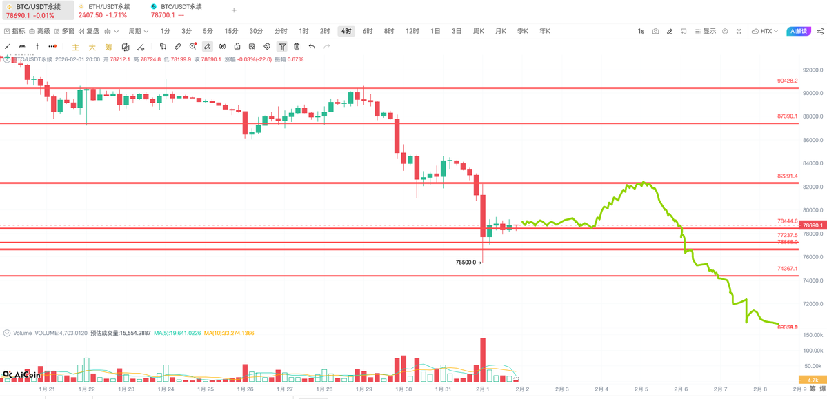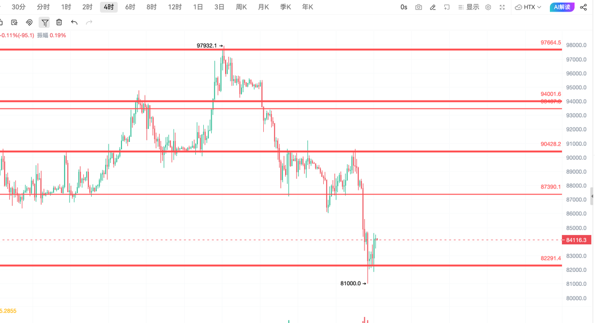 今天黄金放量插针(不太好的现象,即使没到顶,也要大调整了)把BTC继续带下来了. 全网26万人爆仓了16亿,本来就捉襟见肘的流动性又被抽走一些. BTC或许早该是这个走势了,不好好调整一段时间,后面就难涨了,从22年一直涨到了25年底,调整几个月或则半年也是正常的.