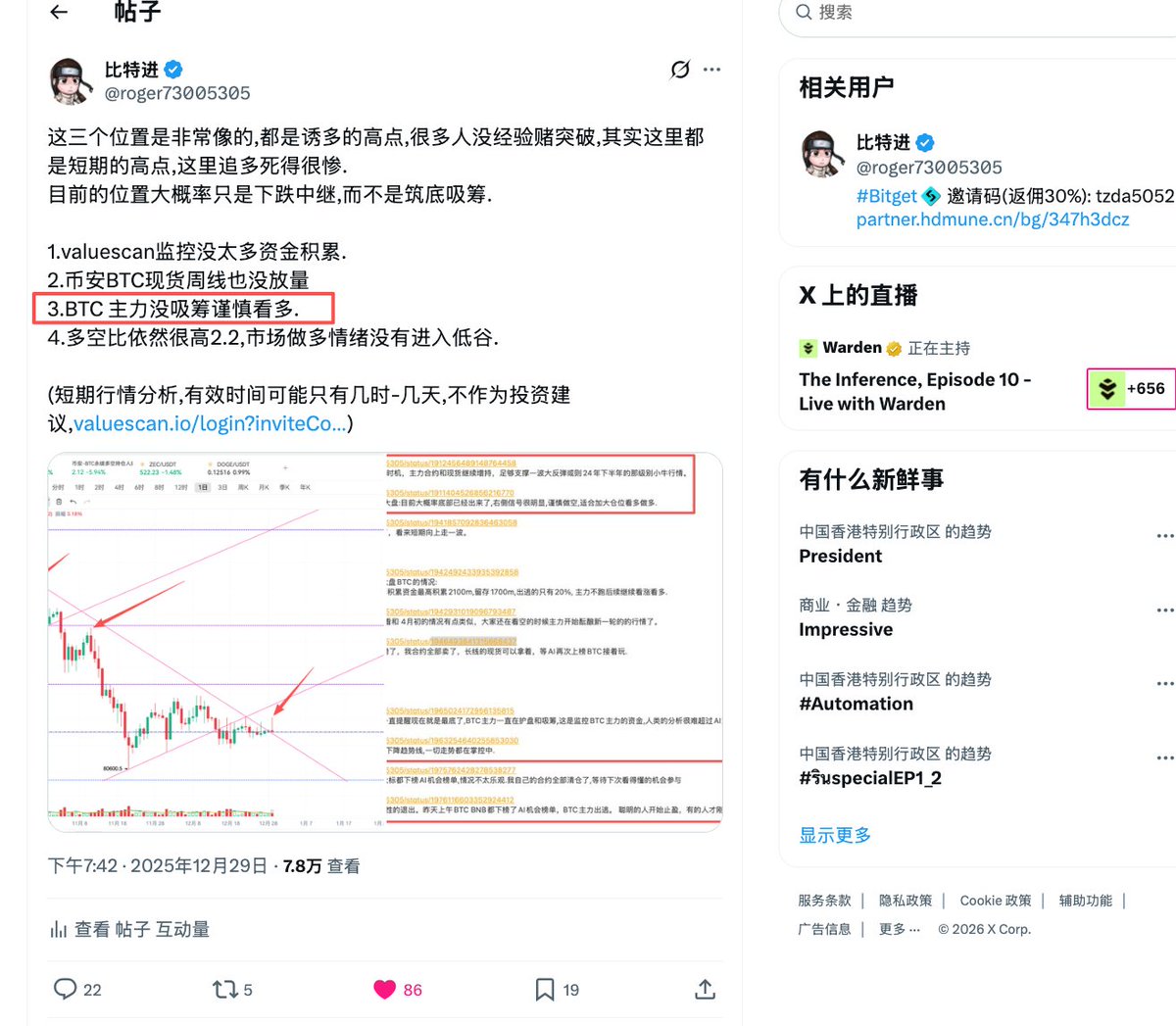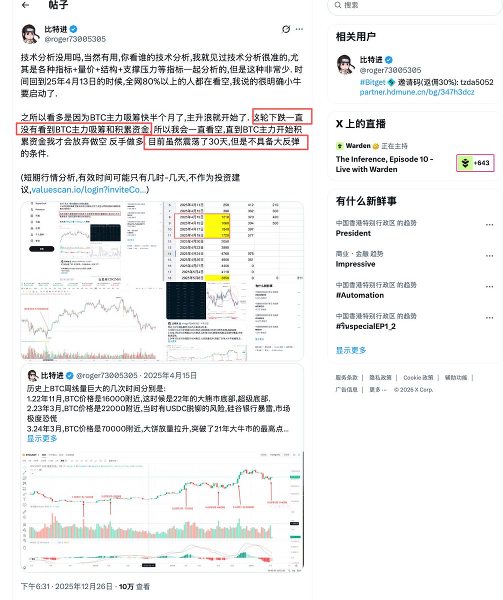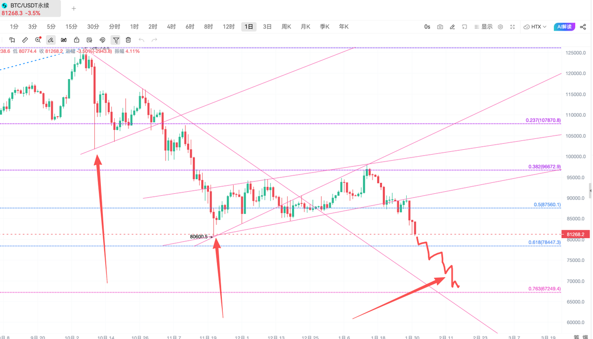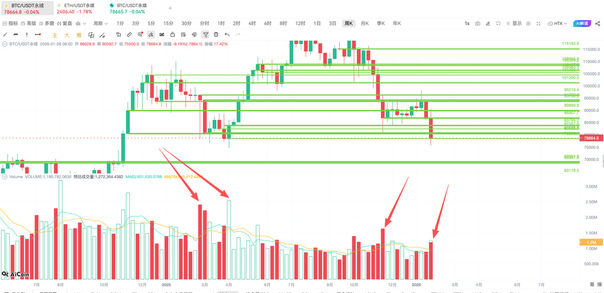 1. 12万的顶部BTC主力已经派发过了,这是牛市结束的派发,而不是普通的调整.