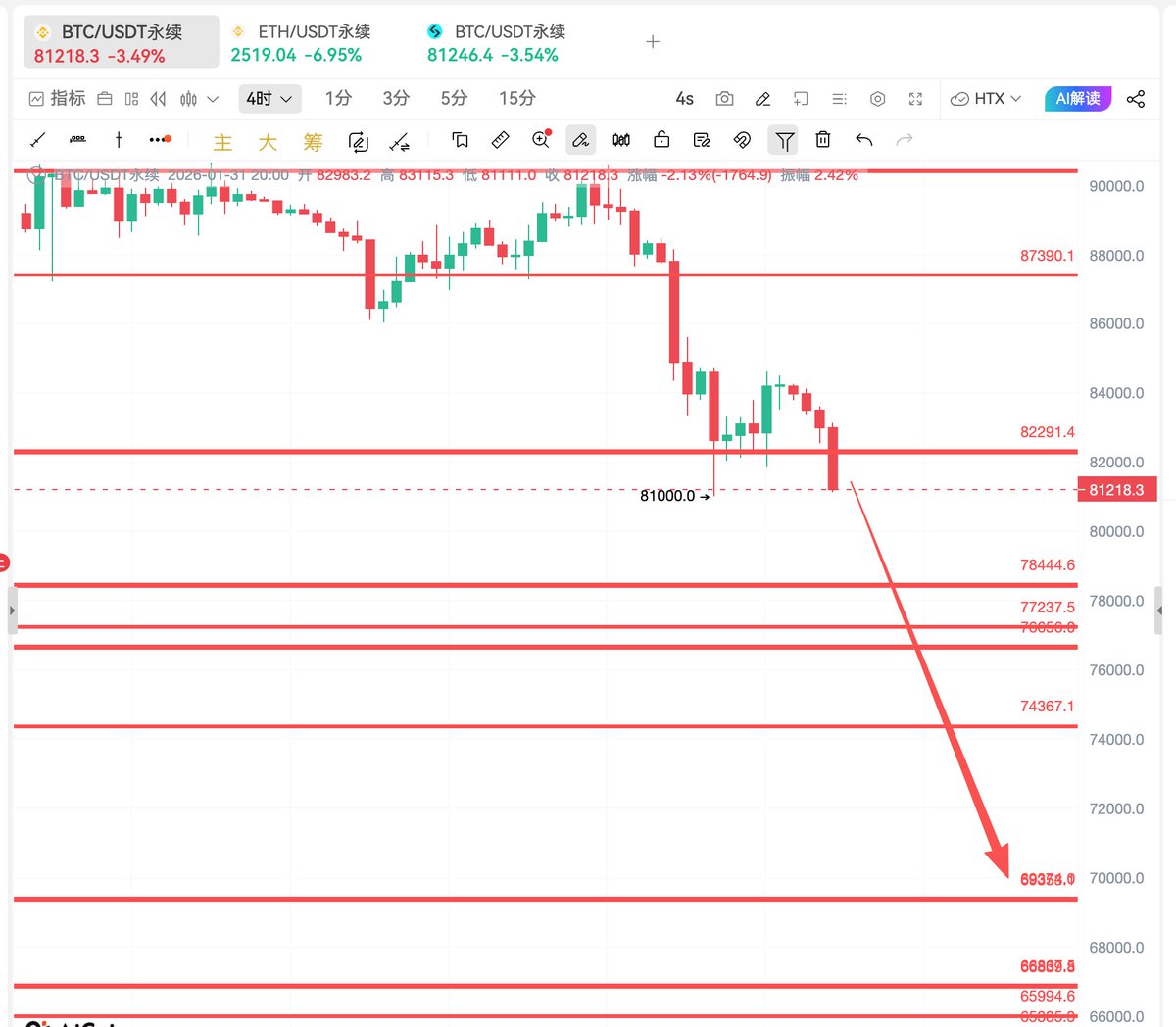 最后说下行情目前的755---772都属于强支撑区域,短期需要修复和调整一下, 这里后面如果继续跌破,一定会到69000附近的,拭目以待吧. 69000这里我提过好多次了.