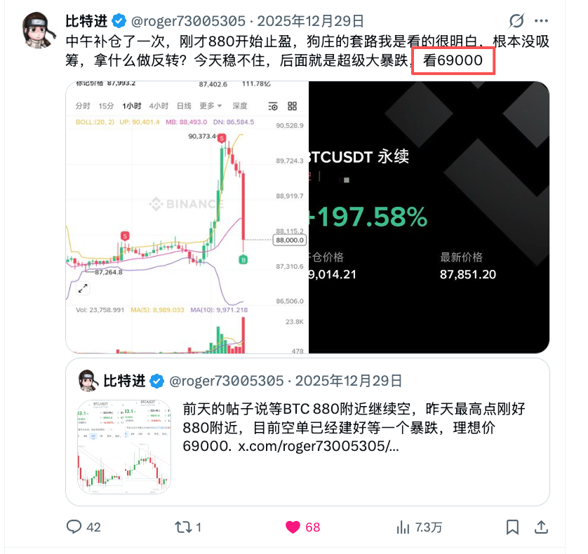 822这个位置站不稳的话,如果继续下去,我还是看有希望去69000附近筑底. 之前是我想太多了,想的太复杂,现在回头看我之前想的一点都不多,我的看法未必错了,主力的套路总是很多.
