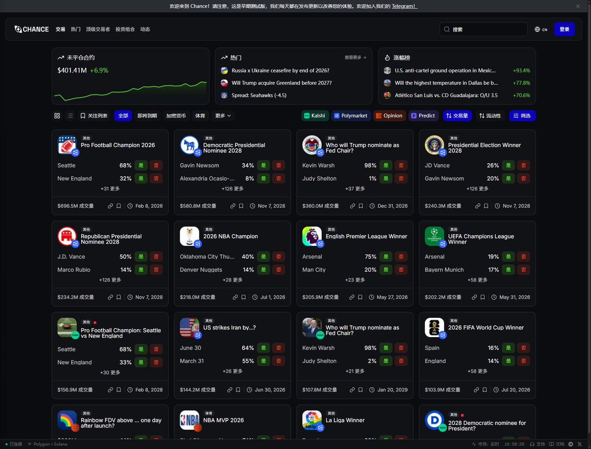 4. @Chance_ : 这个聚合器是目前支持的最多的一个。支持poly+kalshi+op+predict这几个。