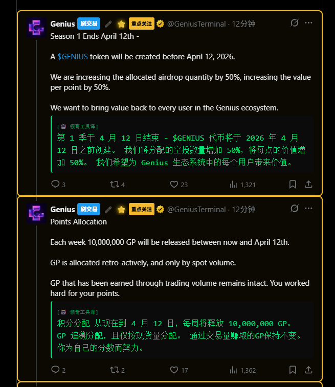 刷起来!! @GeniusTerminal 空投规则来了。