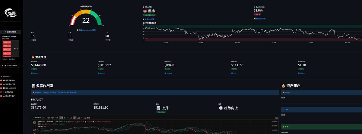 增加了重点代币实时单独更新,情绪指标每小时更新。