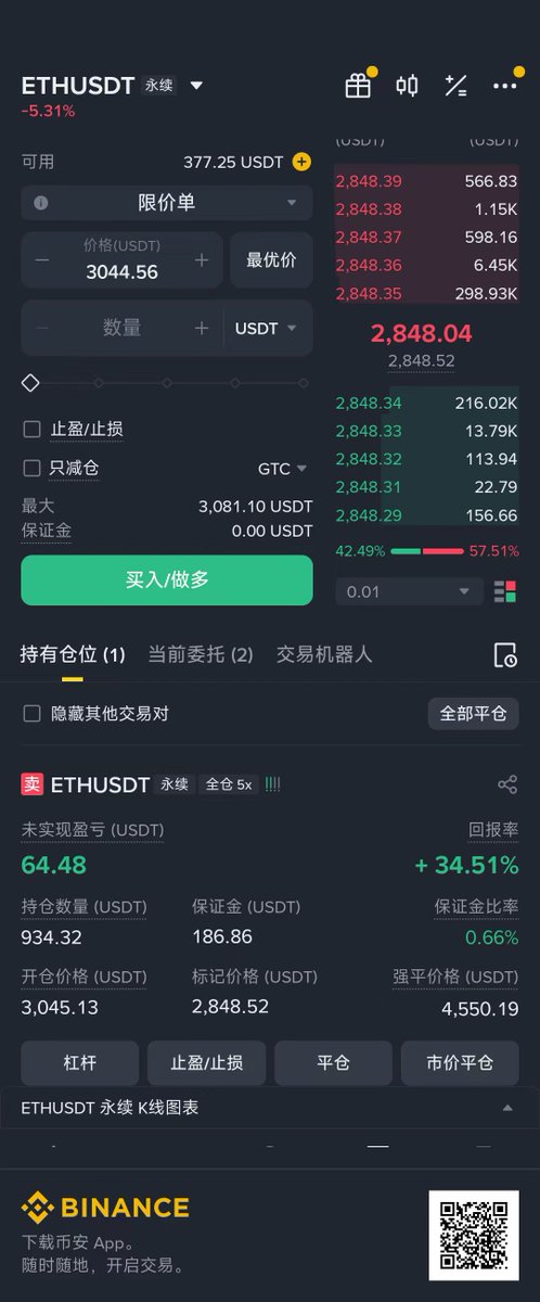 增加了开单后持仓显示,实时盈亏,并支持一键平仓和止盈设置。