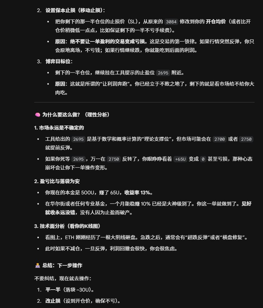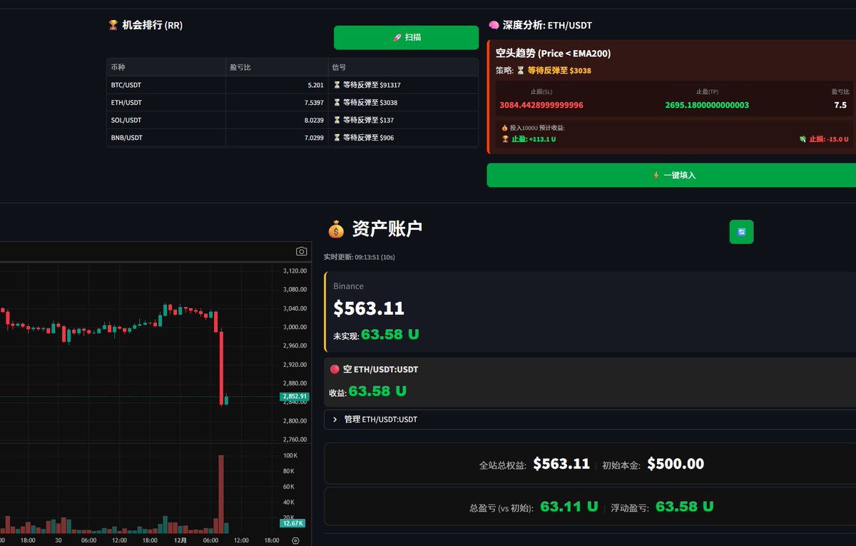 🤖 AI 智能风控:不再盲目开单!系统根据高胜率指标,自动计算盈亏比。 盈亏比不划算的垃圾单,AI 直接过滤掉,只做高赔率的交易!