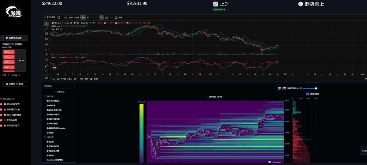 5.支持代币K线图下方对应合约清算热力图,懂得都懂。