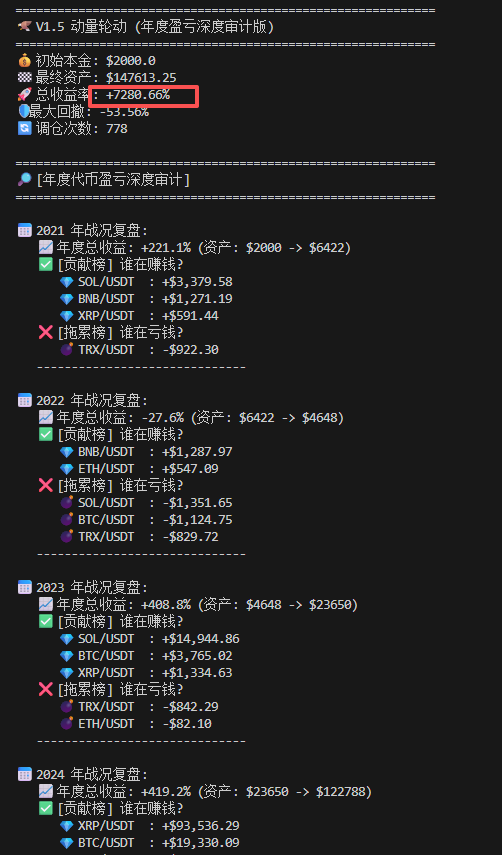 训练AI合约策略回测给的结果。