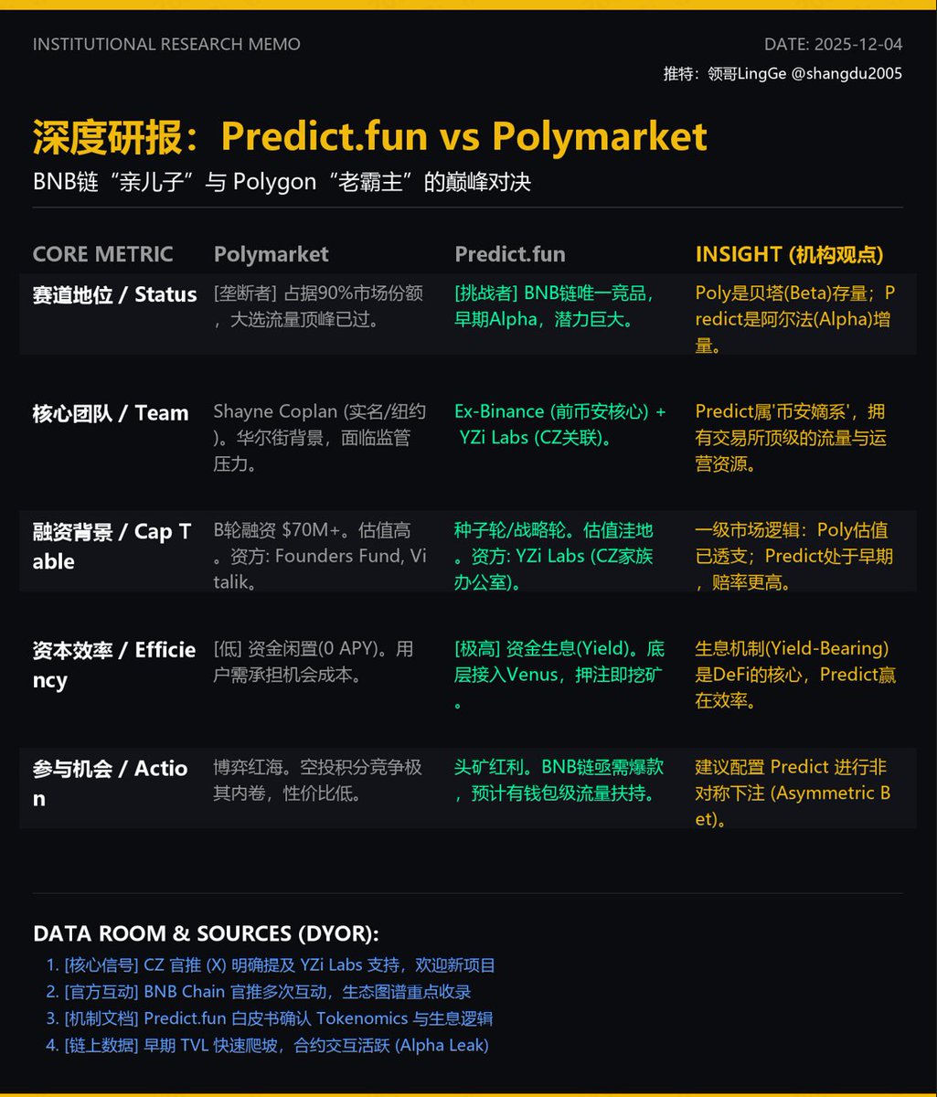 https://t.co/JIHJ7c6XCi 方案:你的押注资金在后台会自动进入 BNB 链的 DeFi 协议(如 Venus 等)赚取 APY。你赚的是 “预测收益 + DeFi 利息 + 潜在空投”。