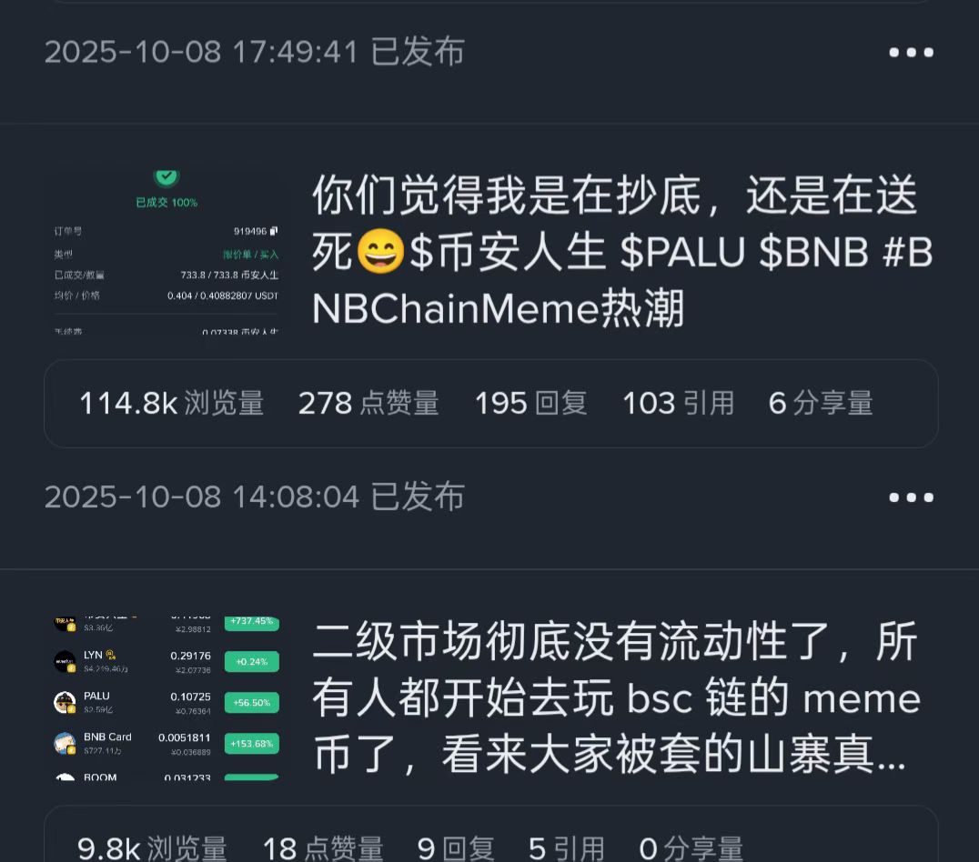 现在的新币,链上币种层出不穷,一夜冒出一大片。只要有热度、有炒作,交易所就争相上线,谁不上,谁就失去用户。市场早就已经饱和,老用户在离场,新用户只追新币,老韭菜越来越看不懂,新玩家只剩FOMO的狂欢了。