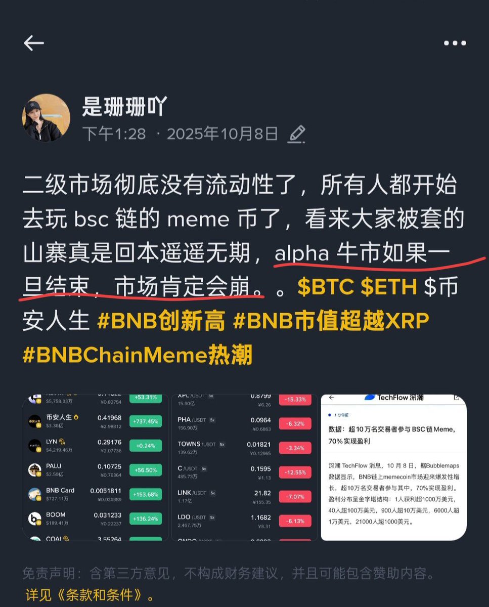 更可笑的是,这市场只剩下热度与价格,没人再关心团队是否做事。曾经满怀理想的团队,也只能选择摆烂。老币上方套牢盘沉重,信仰者寥寥无几。拉盘只会迎来无尽的砸盘,换作是你,你愿意拉吗?