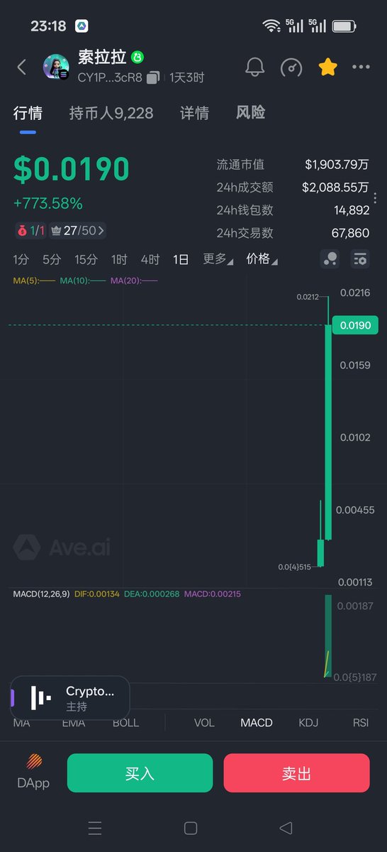 2.索拉拉0.008进,0.024卖出,赚两倍!