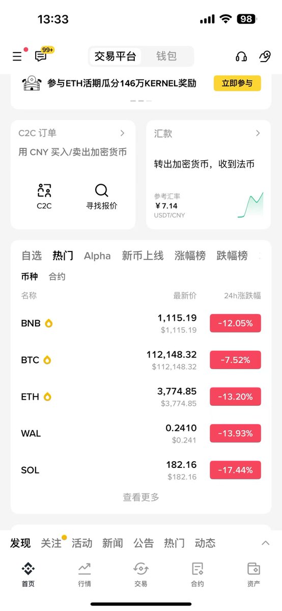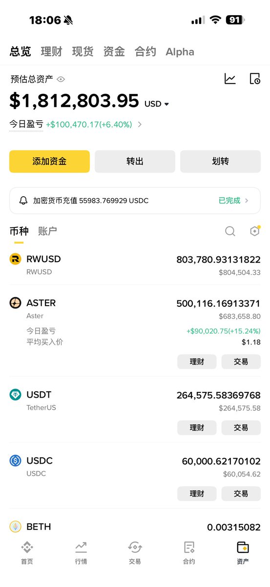 目前持有一点BNB和我踏马来了,其余都在币安理财~