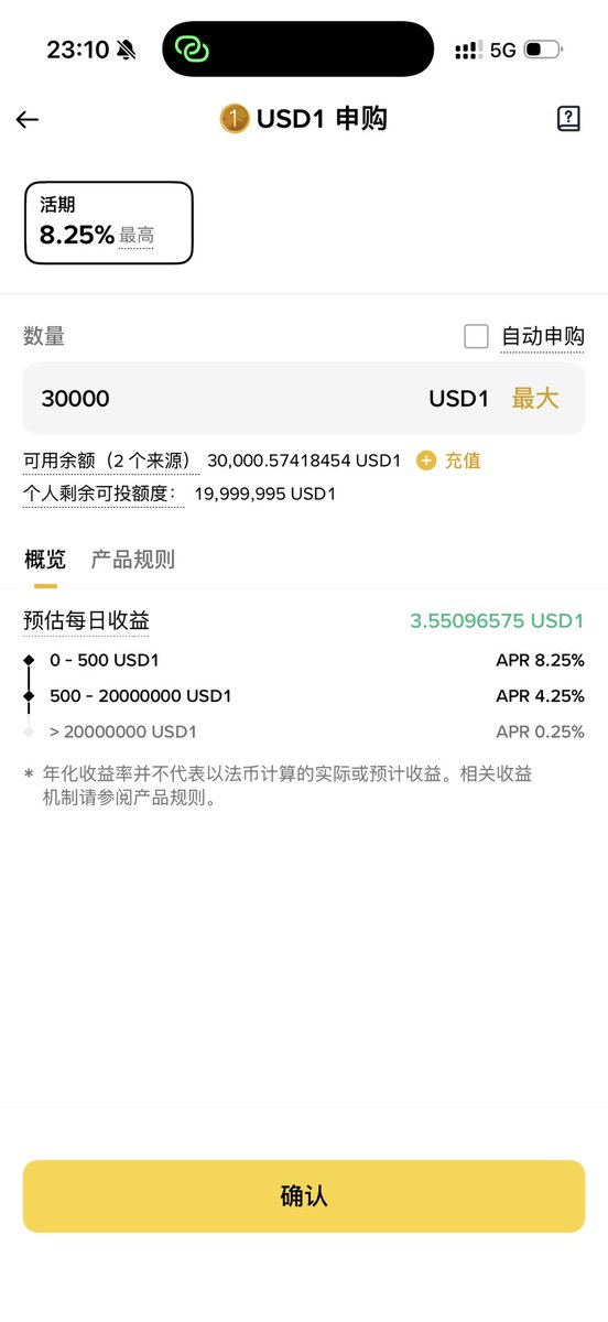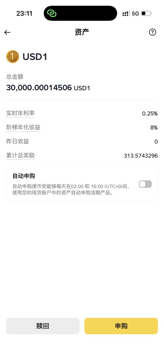 这次我又投入了3万U理财,大资金在币安存的定期,要不全投USD1了,这个利息太高了。