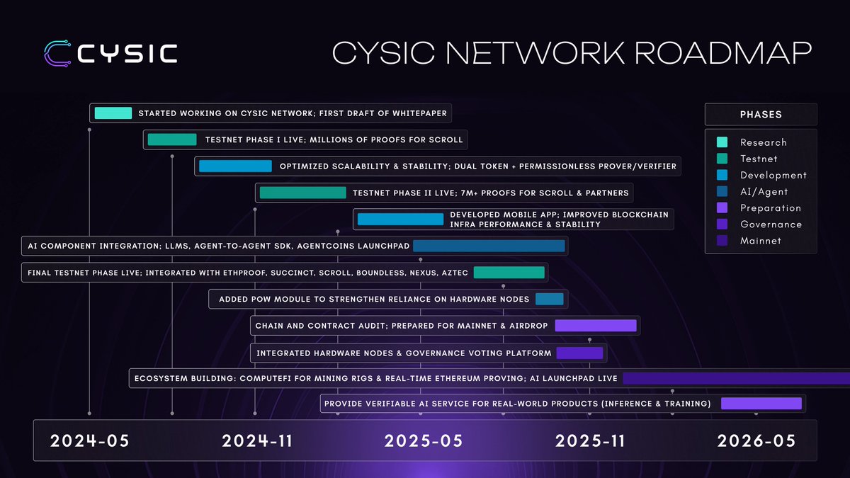 Cysic @cysic_xyz 近期 公布了具体的路线图,看样子是马上就要TGE了,兄弟们终于是要吃点肉了