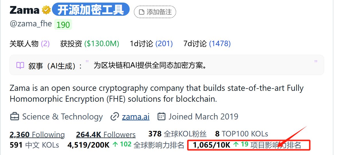 说到重点项目 FHE龙头 Zama @zama_fhe ,都说是天王级别的项目,一起看看到底是不是:在xhunt的排名是1065名,妥妥的天王级项目,如果能进入到前500,那就是和Monad、Mega差不多级别的项目了