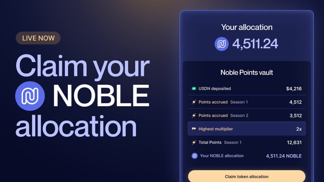 ✅$NOBLE 空投领取活动于今日(10 月 30 日)开启