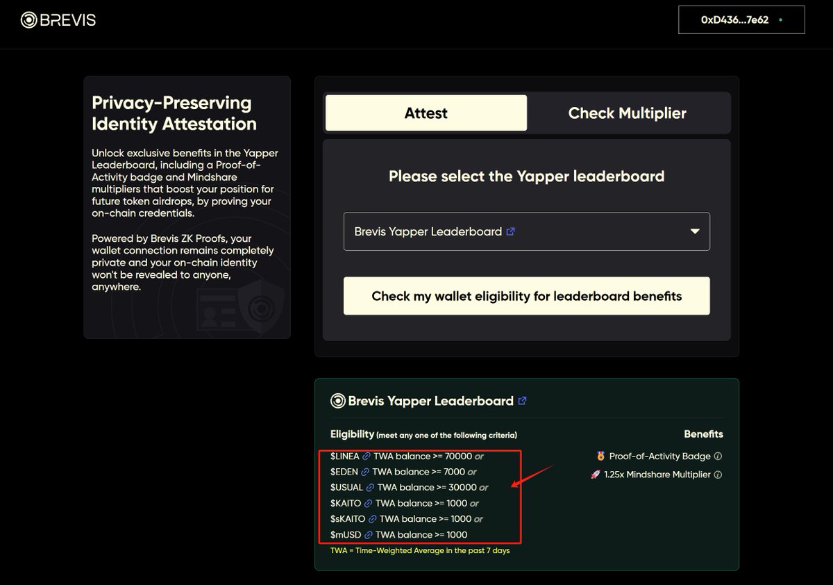 通过证明您的链上凭证,即可在 Yapper 排行榜上解锁专属福利,包括活动证明徽章和 Mindshare 倍增器,从而提升您在未来代币空投中的排名