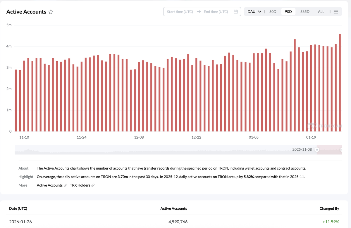 12.4M+ transactions in one day, the strongest TRON activity in 90 days