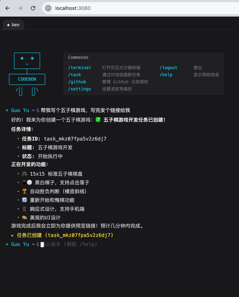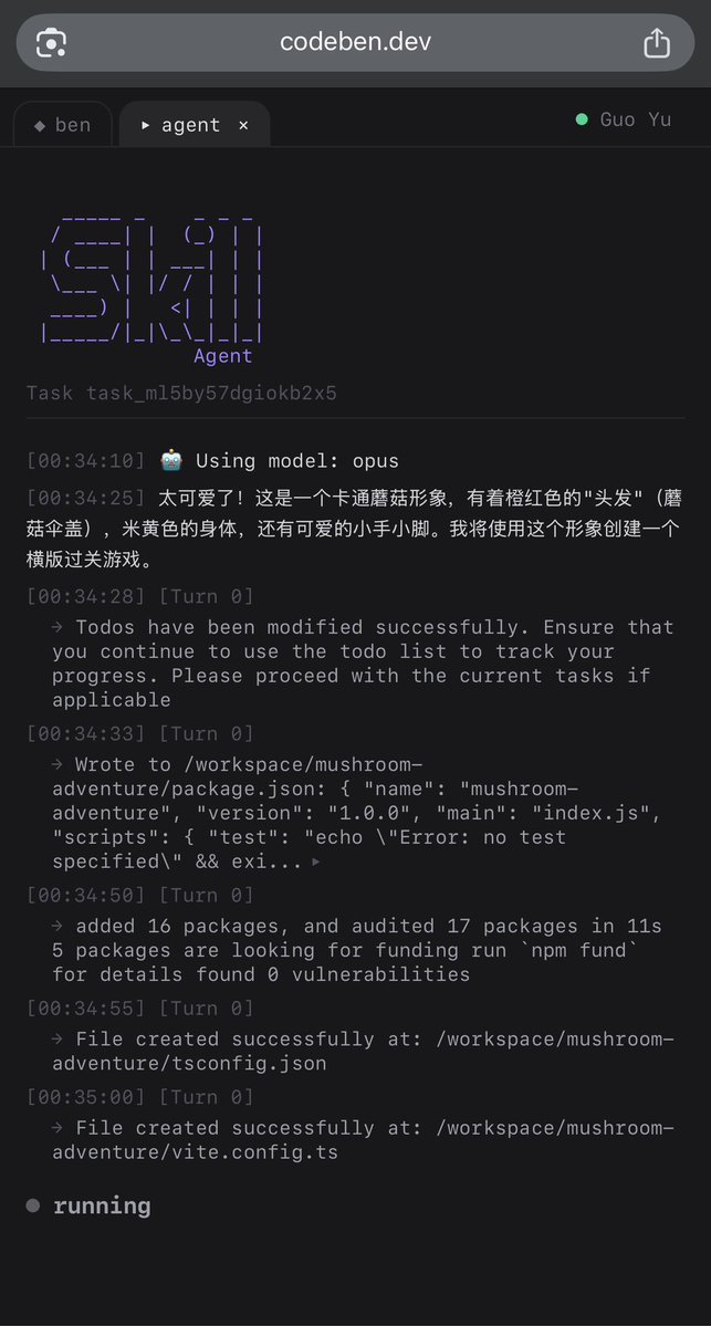 给 codeben 支持了专属沙箱功能 shared-cpu-2x@2GB,访问飞快,能持久化运行,准备给 ben 加一个火力全开的付费功能,全部模型都使用 opus4.5,让 ben 指挥多个 opus4.5 同步工作在不同的 git 分支上,然后我就放手不管了,让他们自己去探索要写什么产品。