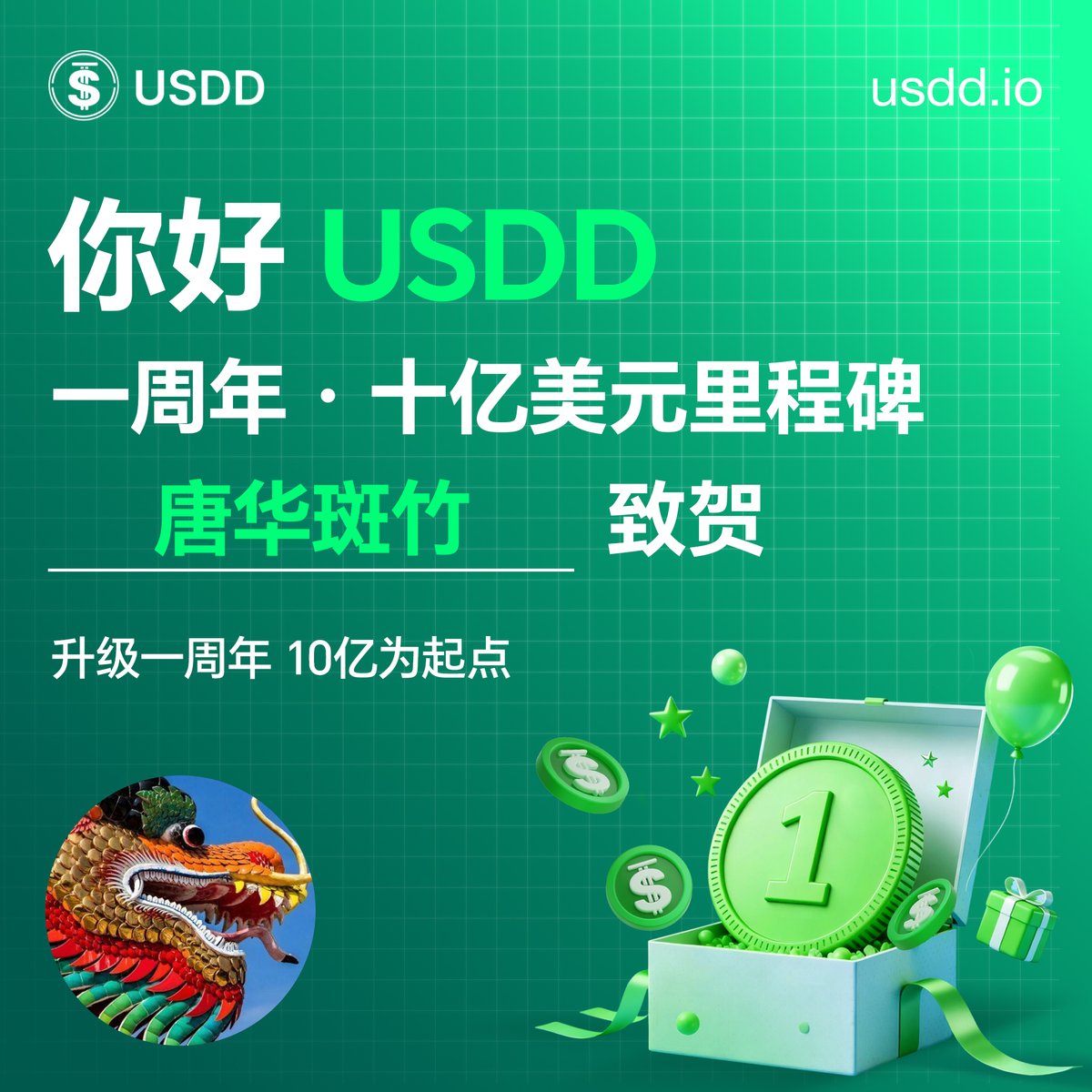 🤩一起举杯庆祝USDD协议升级一周年!🎉先给大家上周边!关注 @usddio @usddio_cn 点赞+转发+评论留言祝福,🎁抽三位幸运粉丝送USDD周年限量版周边礼包,⏰48小时开奖。