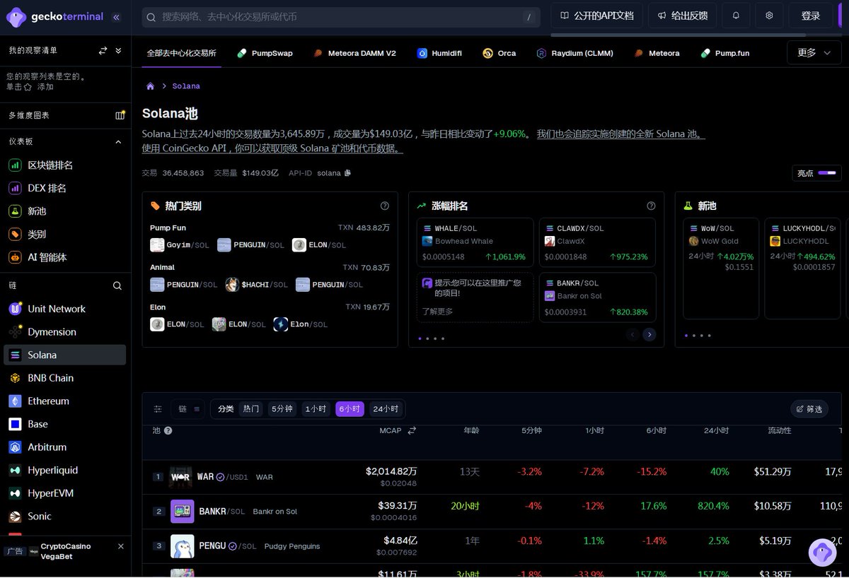 比如你看它的 #Solana 资金池页面,数据排布得很直接,深度、交易量、持有人变化全在眼前。之前有一次一个新币突然被推起来,社群里一片FOMO,但我点开 #GeckoTerminal 上的持有者标签页一看,发现大头持仓地址在持续出货,增长全是散户在接,当场就决定不跟了。后来那个币果然没撑住。这种判断不是靠猜的,就是工具把关键信息摊开给你,让你自己看到真实情况。