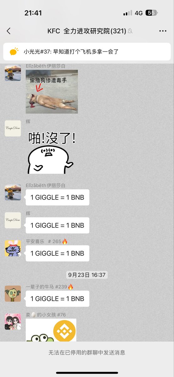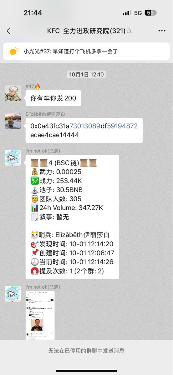 距离抄底giggle的位置已经两倍了,虽然没抄到底部但是也小赚一点,我没有猫哥@BitCloutCat 和旧亿老师@cryptojiuyi 那么深的信仰,当时跌到47刀一度让我对这个市场产生怀疑,所幸现在拉回来了,只是深度洗盘而已。回顾10月,我错过了很多,但是也抓住了低位的giggle和4还有一些其他的几十倍小金狗,总体感觉这个市场大部分时候还是太艰难了,10月那么好的行情到最后落袋的依旧是少数,所以我决定新建一个alpha小组和一个青菜call频道。