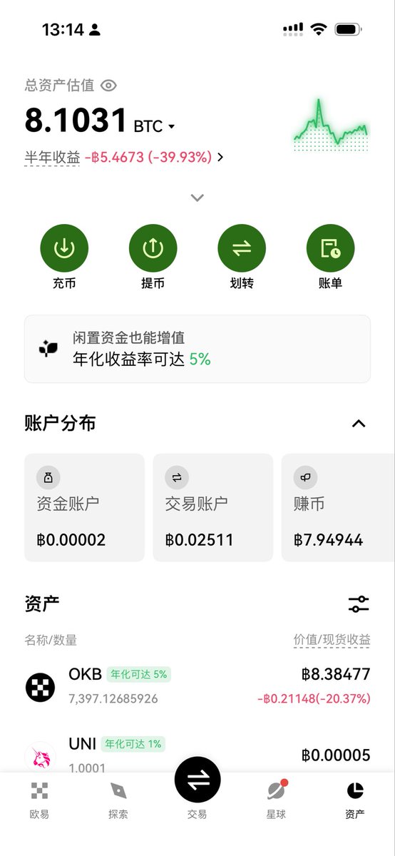 因为我没有比特币,我只有okb,哈哈哈哈哈。