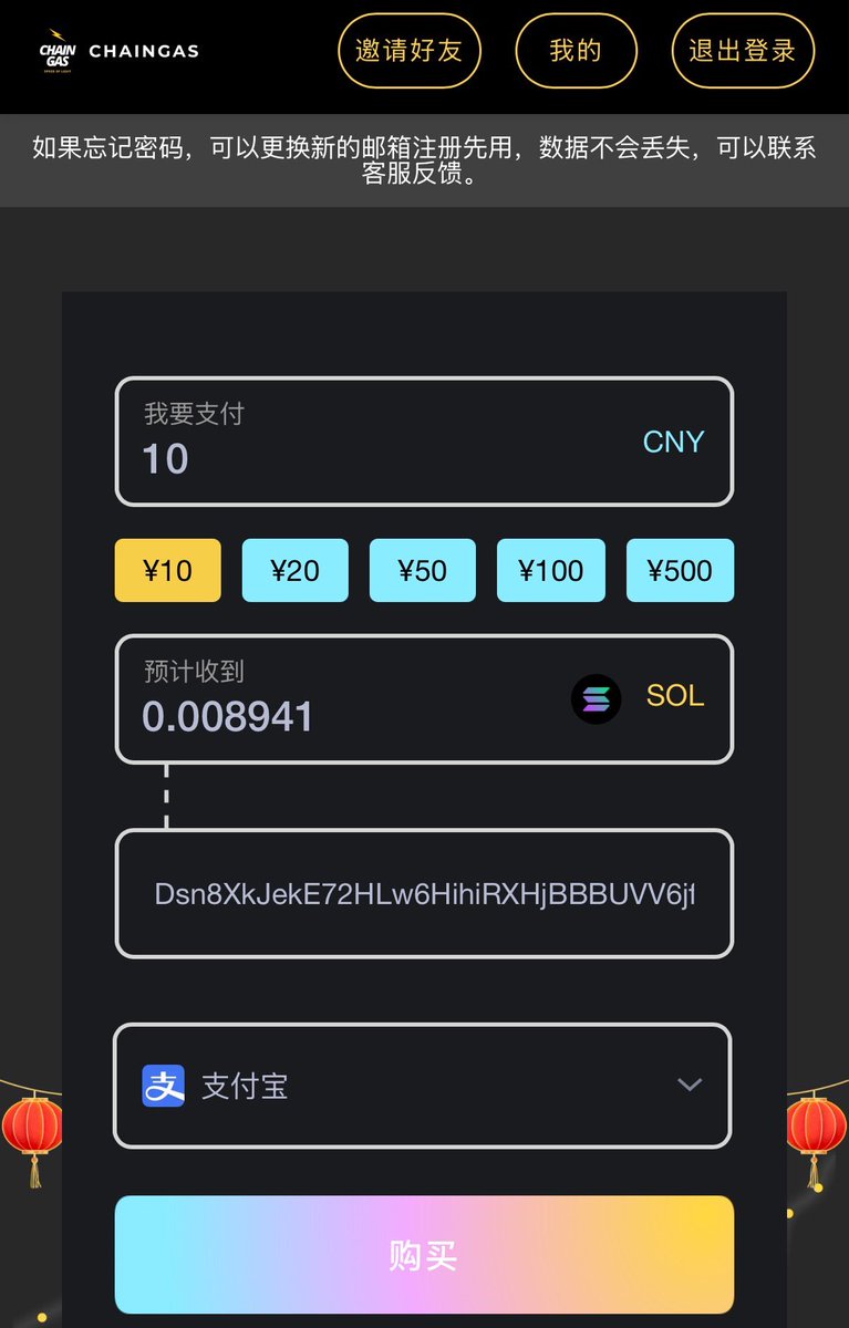专业打狗人士和链上空投达人狂喜,无需KYC就能用 微信 和 支付宝 的零钱购买链上Gas费,秒到账。ETH,SOL,BNB等热门公链通通包括在内!