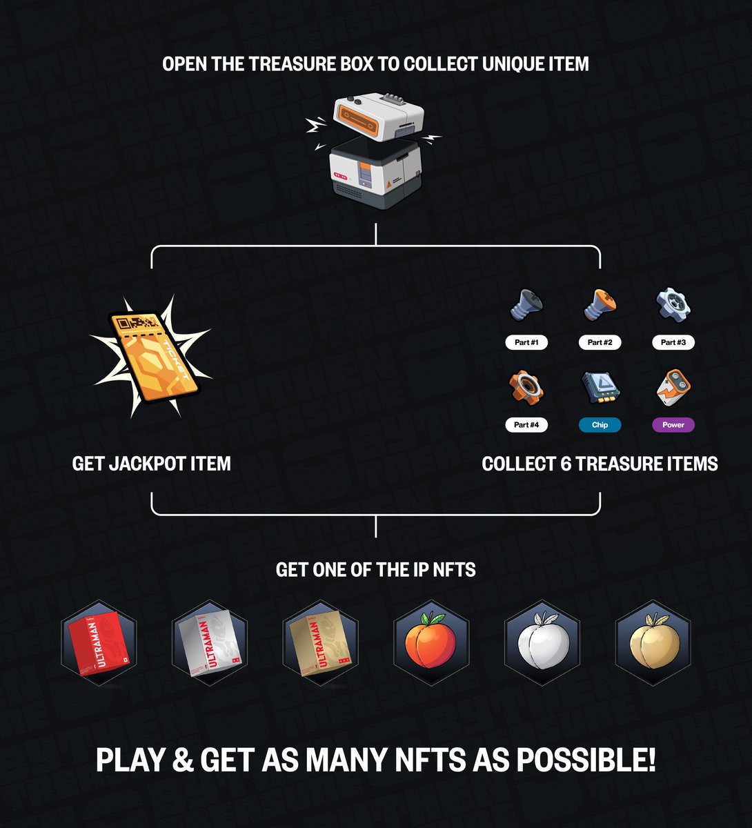 规则很简单,如果你通过开盲盒集齐6个物品或者开出1个特殊物品(JACKPOT),均可获得奥特曼或Kappy NFT空投,目前奥德曼NFT在 @opensea 上的成交价是0.22 E。