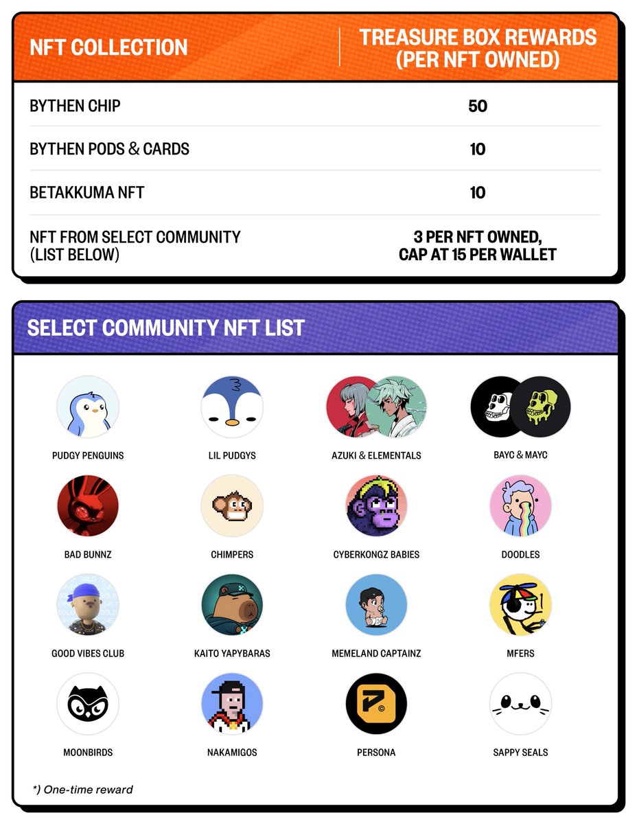 1⃣持有Bythen NFT以及胖企鹅、BAYC、Kaito Yapybaras等