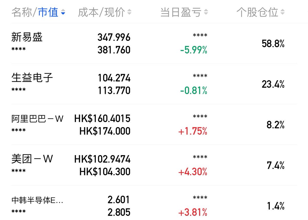 a股手里捏的新易盛,生益电子,阿里,美团,中韩半导体. 新易盛因为大客户甲骨文三季度末放假没提货导致三季度业绩环比没涨还是季度23亿利润,睡醒给我跌麻了,大幅回撤.