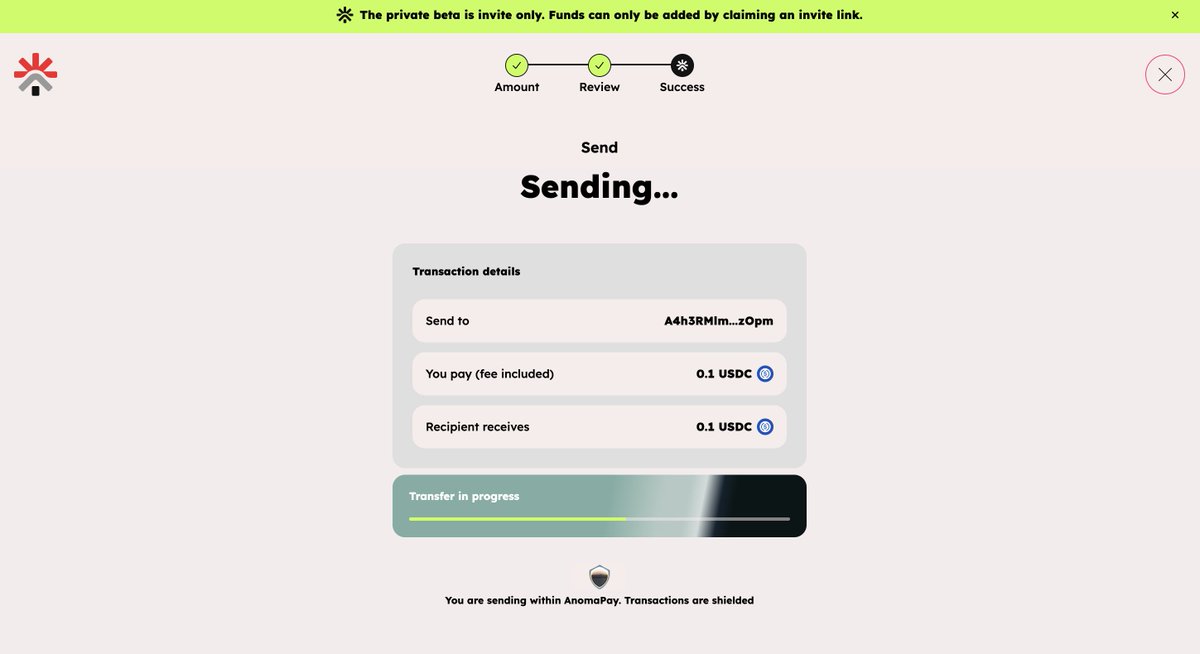 基于Anoma 意图架构的 @AnomaPay 敏锐地捕捉到了这点,立足隐私支付赛道准备抢蛋糕。刚体验了AnomaPay 的早期Beta 版本,整体操作下来非常丝滑,几十秒即完成一笔隐私转账。