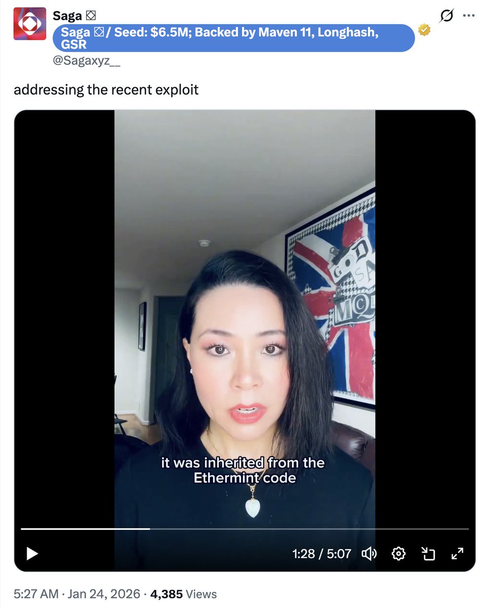 Saga 联创兼CEO 瑞贝卡 @beccaliao, 斯坦福大学和哈佛法学院的双料创业精英,把SagaEVM 链被盗700万美元的锅丢给Ethermint,深藏功与名。