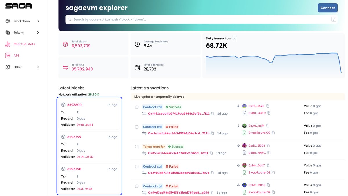 天王级模块化公链 @Sagaxyz__ 的EVM 兼容链SagaEVM 宕机已经接近3天没有出块了。