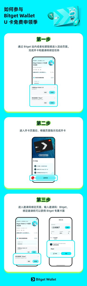 根据提示开通加密卡,然后在「邀请中心」填一下邀请码 Bitget,绑定完成就算参加活动了。