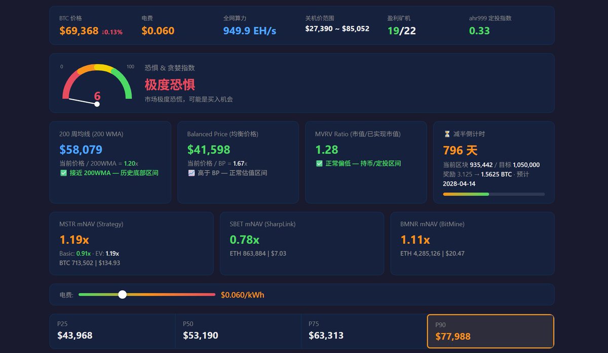 神鱼做的 BTC 仪表盘指数网站可参考