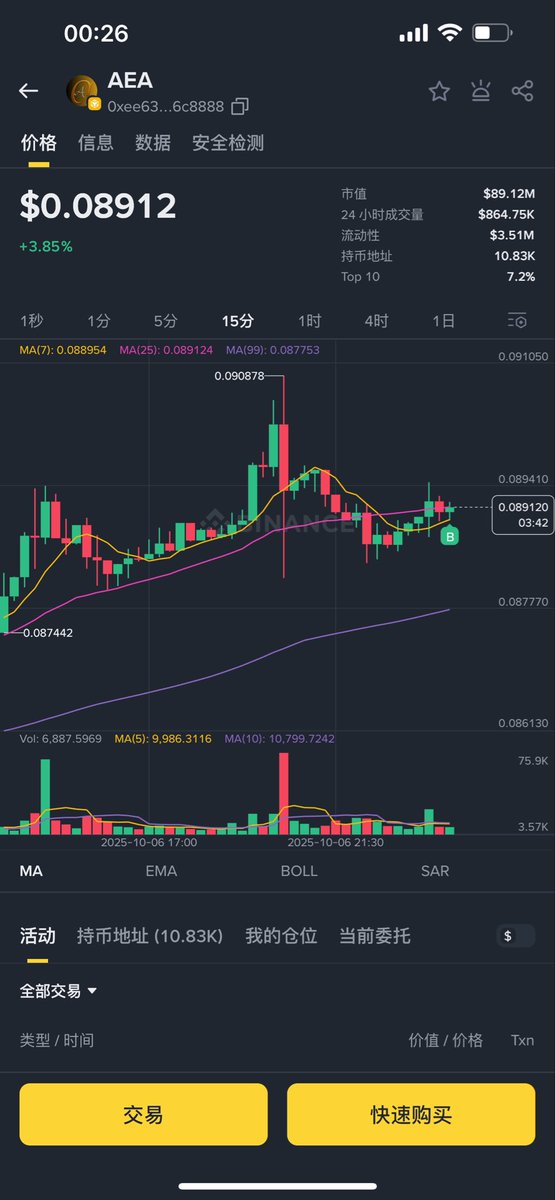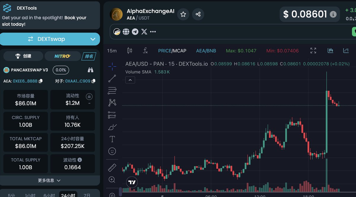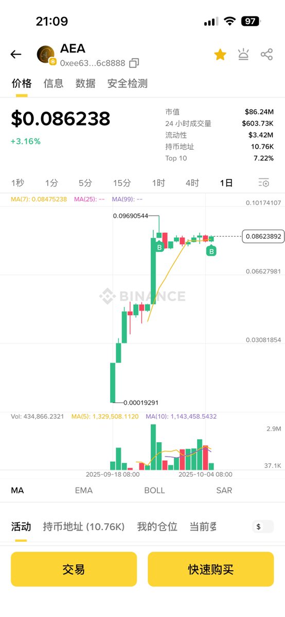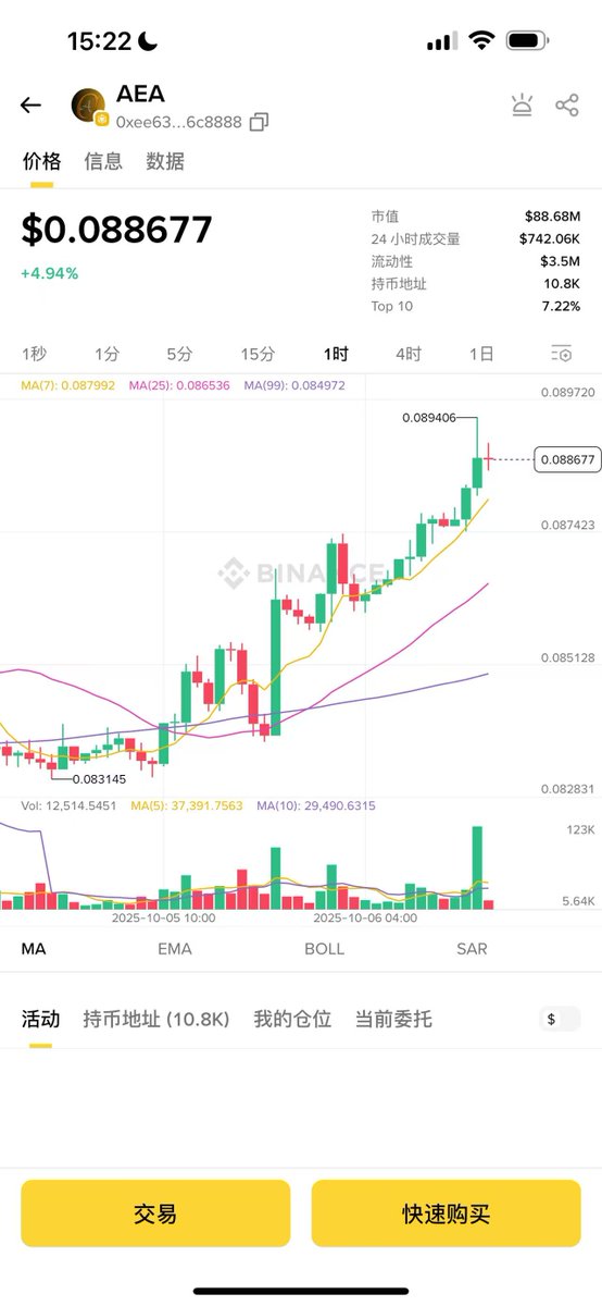 这是一个AI量化系统@AEACoin_CTO 的平台币,$AEA 已经上了 LBank、Bitmart、HiBT、Biconomy 等交易所,最近一直在涨,回调可以入点!