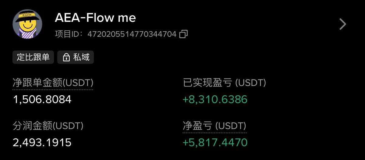 他这个不用充钱到别的网站,在币安就能操作,资金安全让我比较放心。目前我是买币+跟单都上车了。跟单翻倍了我就把本金拿出来接着跑。