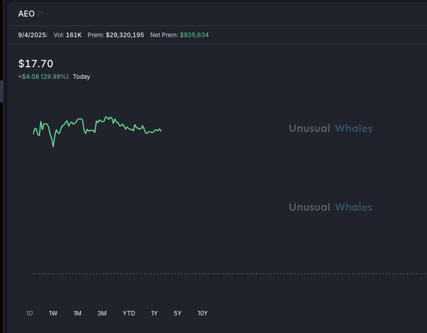 昨天下午,$ aeo看到了一系列通话活动,仅几个小时才报告收益🦅