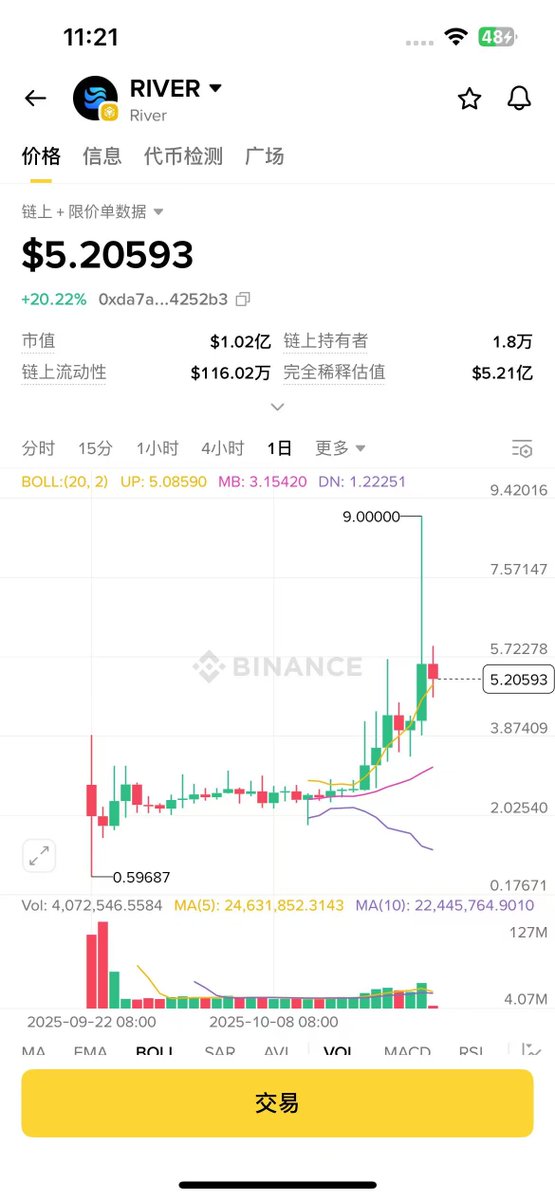 $RIVER 价格从2U多拉到了5U 昨天最高9U