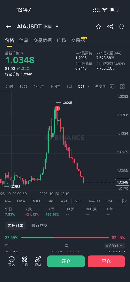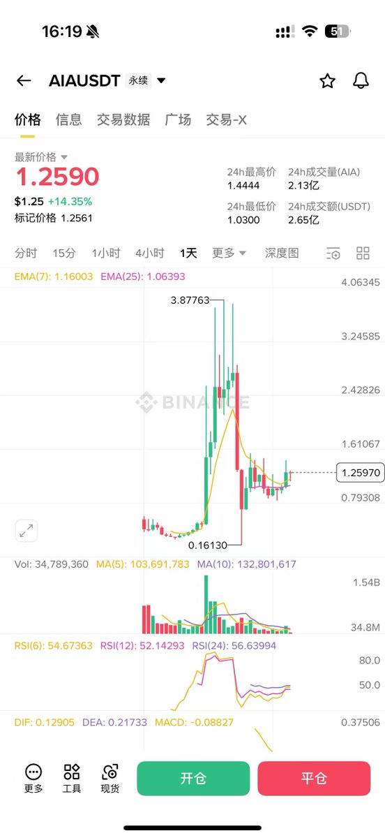 $AIA 第一波从0.3拿到1.5,最后拉到3,可惜只买了3000U,昨天又入了点,这个币1是比较熟,2是确实庄家比较活跃,用他的利润去干他,以利定损,小玩一下。