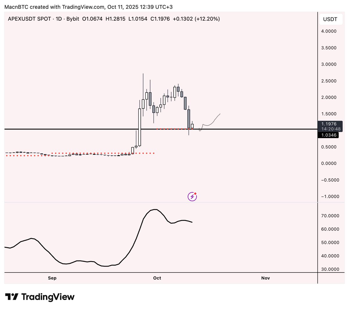 $APEX 代币呢?现在1.2刀,市值1.57亿,Staking V4每周奖励从 $APEX 转稳定币,LP池赚双倍,买回机制拉满9月29日启动的每日买回,用50%-90%收入回购,10月FOMC波动期它稳住阵脚,分析师喊762%涨幅潜力,10月ATH指日可待。