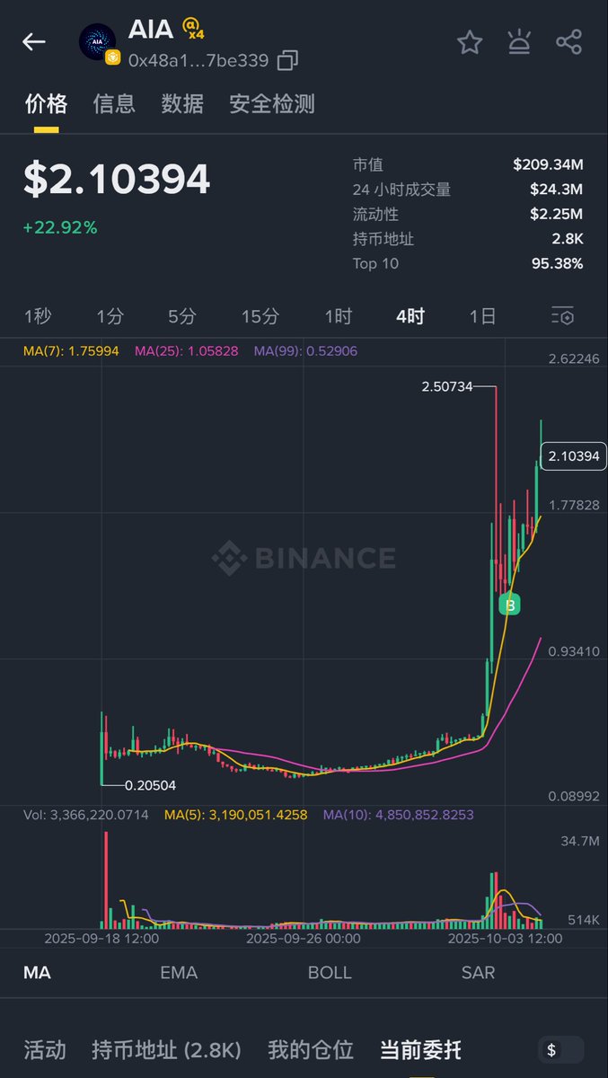 我挖的aster都在0.2跑完了,因为太多信息源,导致我对aster的预期并不高, @okzczc 告诉我项目方连工资都不发,包括cz也很久不和aster互动,我吓的赶紧跑路。结果cz直接喊单。这里是比较确定性的机会了。但是我本着卖飞永赚的心态(因为还有KOL锁仓部分),并没有重新上车。直到第一波摸2,回调1.3的时候才上车。顺便我现在1.8左右套保了一部分锁仓的。