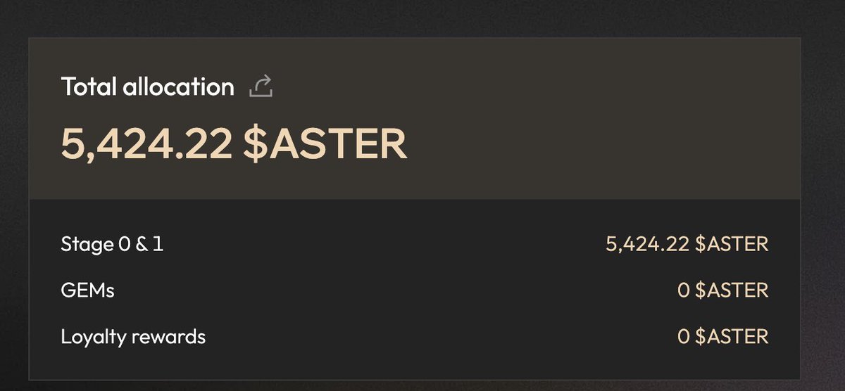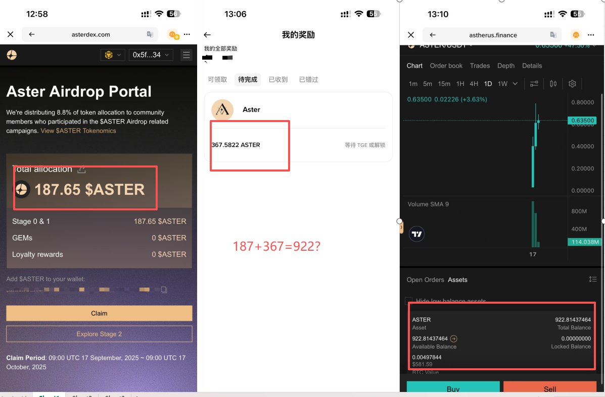终于有机会来做下 $AST 的复盘了,虽说还没开盘,但空投可以查了。 查询链接:https://t.co/d1FlHoxXzp 其实我并没有外面传的有那么多代币,我大部分的资产还是 $APX ,之前主要在 @Aster_DEX 推出的交易量任务起了一批新号,也没多少个,单号就几千个。 不过按照盘前价格0.12来算的话,还是有的赚的,应该算得上是今年链上最有收获的一个项目了!